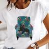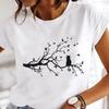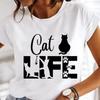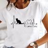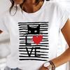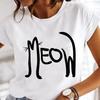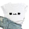 T-Shirt mit schwarzem Katzenaufdruck für Damen, weißes Kurzarm-Sommer-T-Shirt mit niedlichem Muster, Sommer-Casual-Weißes T-Shirt, grafische T-Shirts