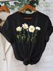 Damen T-Shirt mit floralem Print, kurzen Ärmeln - Weißes Gänseblümchen- & Grünblatt-Design, lässige reguläre Passform, Damen-T-Shirts, Freizeitkleidung