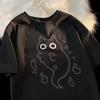 Geisterkatze Lockeres Kurzarm-T-Shirt für Damen Original Japanische Modemarke Paar Reine Katze Transparente Geisterkatze