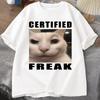 Certified Freak Cat Meme T Shirt Short Sleeve Match My Freak Hard T-shirts Casual O Neck Printed T-shirt Cat Lover Tees Women