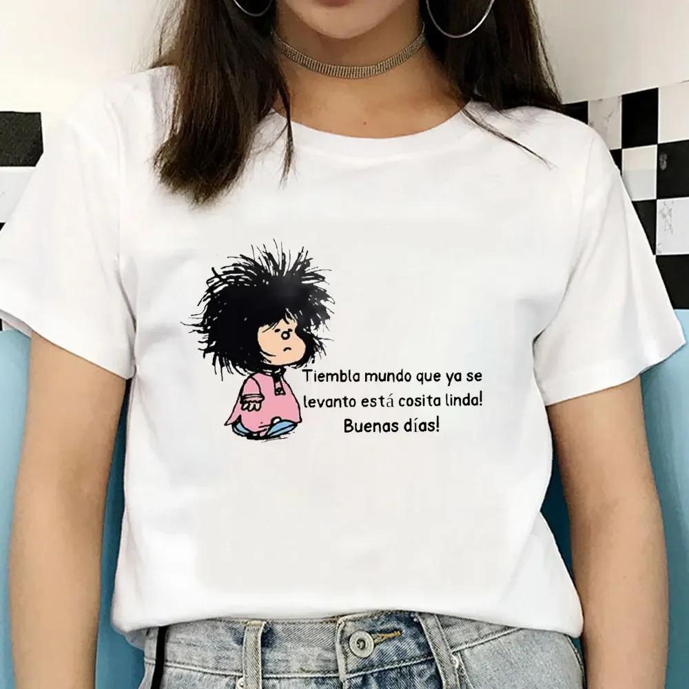 Kawaii Dinge werden von Frauen erledigt T-Shirt Mafalda Cartoon Mädchen Y2k Basic Oberteile O-Ausschnitt Polyester Herren T-Shirt Humor Geschenk