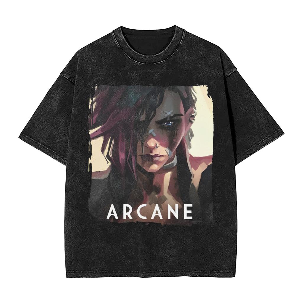 Anime Arcane Vi Spiel Violett Bedrucktes Gewaschenes T-Shirt Herren Damen Manga T-Shirts Vintage Baumwoll-T-Shirt Harajuku Herren-Tee
