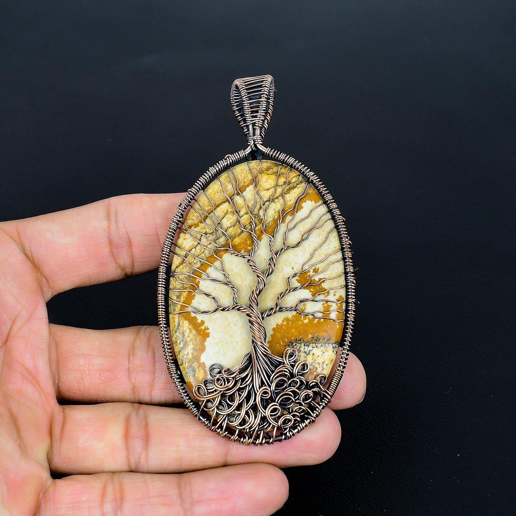 Picture jasper Pendant, Handmade Gemstone 999 Copper Wire Wrap Tree Of Life Pendant Antique Jewelry, For Gift Copper Jewelry