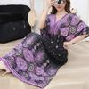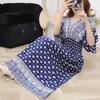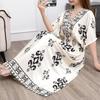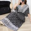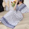 25. Jubiläum Ethnisches V-Ausschnitt Viskose Kurzarm Französisch-Thai Druck Urlaubs Kleid für Damen