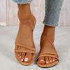 Sandalen mit flacher Sohle Damen Sommer neue Kreuzriemen Übergröße Flachabsatz Strandschuhe
