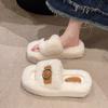 Winter neue quadratische Zehenpartie dicker Boden Oberbekleidung Samt Ein-Wort-Slipper Mode Gürtelschnalle große Größe flauschige Hausschuhe Damen