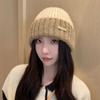 Women's Wool Hat with Autumn and Winter Versatile Big Head Wool Knitted Hat Showing Face Small Loose Thickened Warm Ear Protection Cold Hat