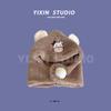 Herbst und Winter Baby Kinder bestickte Plüschmütze Kuh niedliche Ohrenschutzmütze warmer Schal Mütze integriertes zweiteiliges Set
