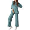 Damen Locker Sitzende Mode Einfarbig Schlitz Rundhals Kurzarm Lange Hose Zweiteiliges Set