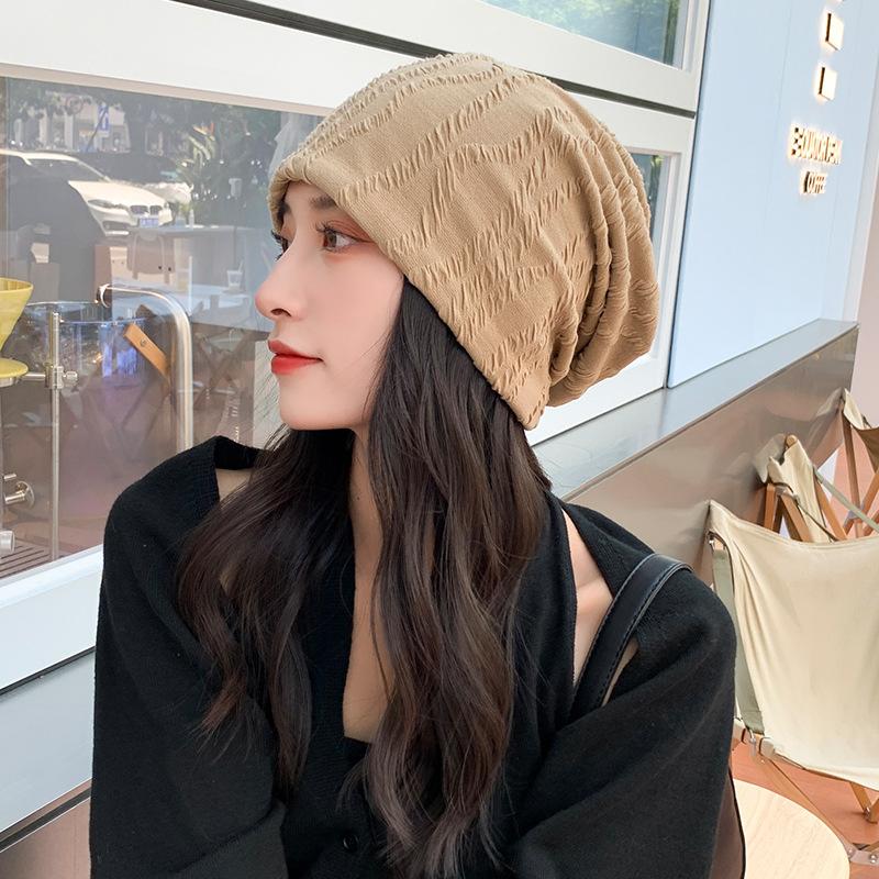 Neue Strickmütze Damen Stacking-Mütze Plissierte Gestreifte Überziehmütze