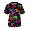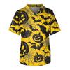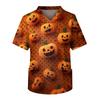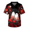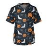 Kurzärmliges Pflegeoberteil für Herren mit V-Ausschnitt und Halloween-Aufdruck auf der Brusttasche
