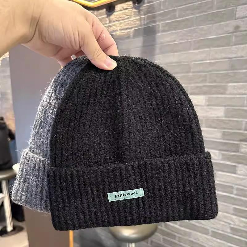 Korean Knitted Hat for Women's Trendy Letter Mark Wool Hat Warm Autumn and Winter Cold Hat Ear Protection Head Fashionable and Versatile
