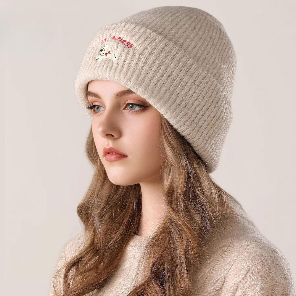 Korean Cute Puppy Embroidered Hat Autumn and Winter Warm Ear Protection Wool Hat Versatile Cold Hat New Hat