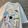 Weltraum Astronaut Einfach Frei Sein Print T-Shirts Herren Damen Mode Lässige Oberteile Hip Hop Übergroße T-Shirts Lässig Sommer Kurzarm