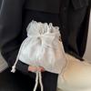 Schicke Canvas-Umhängetasche mit Schleife und Kette aus Kunstperlen, vielseitige und stilvolle Bucket-Schulterhandtasche für Damen