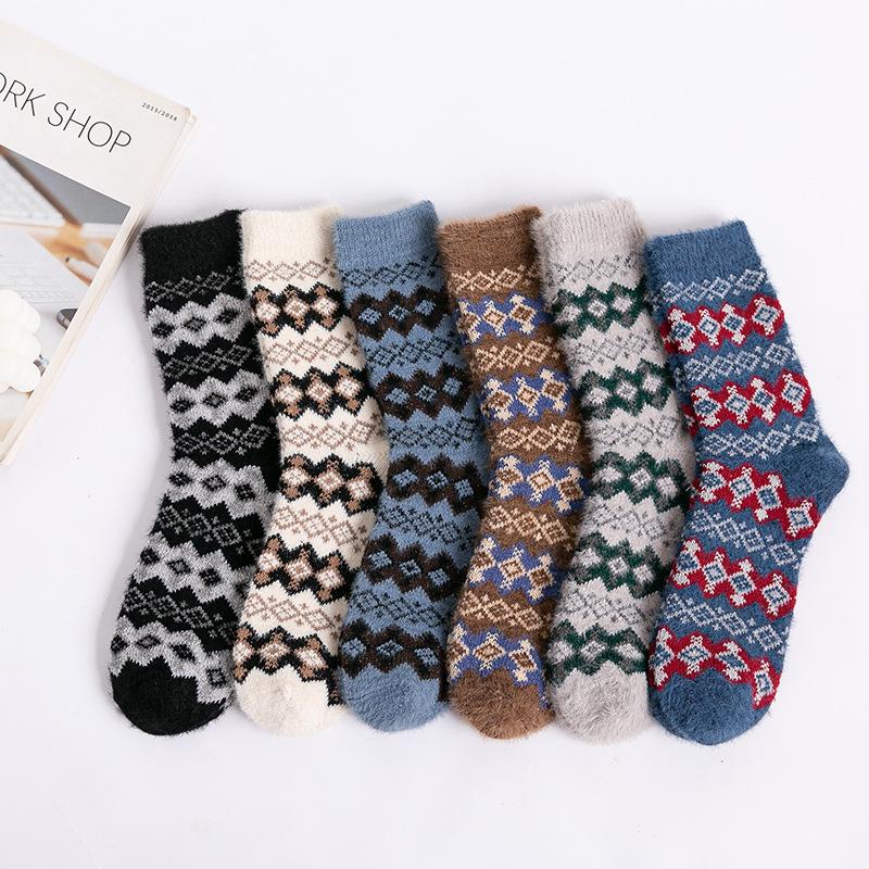 3 Pairs of Socks: Women's Mid-calf Socks with Thickened Faux Mink Wool and Warm Women's Rabbit Wool Socks