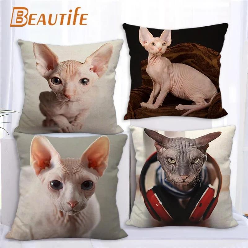 45X45cm Sphynx Katze Kissenbezug Quadratisch Reißverschluss Baumwolle Leinenstoff Kissenbezüge Schlafzimmer Zuhause Dekorativ Jungen Mädchen Geschenk