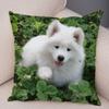 50 Stil Niedlich Weißer Hund Samojede Kissenbezug Deko Liebes Haustier Tier Kissenbezug Weiche Plüsch Kissenhülle für Sofa Kinderzimmer