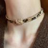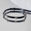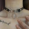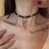 Mädchenstil Weinrot Leder Kreuz Choker Schlüsselbein Kette Aufhellendes Halskette