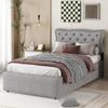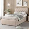 Polsterbett Kinderbett 90x200cm, mit Nachttischpolsterung und Lattenrost, mit dekorativen Nieten, doppelte Schubladen, Leinen Ohne Matratz