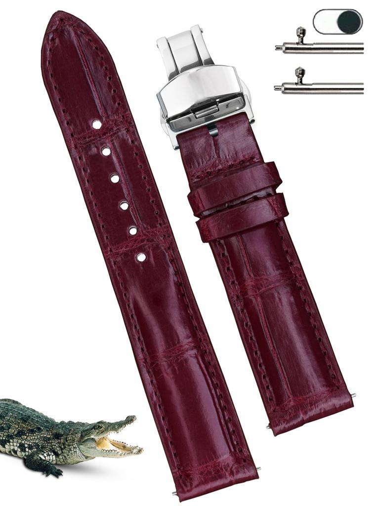 Vinacreations 20mm Wine Red Crocodile Watch Strap with Alligator Replacement Watch Band with Quick Release Spring Silver Wrist Handmade for Men