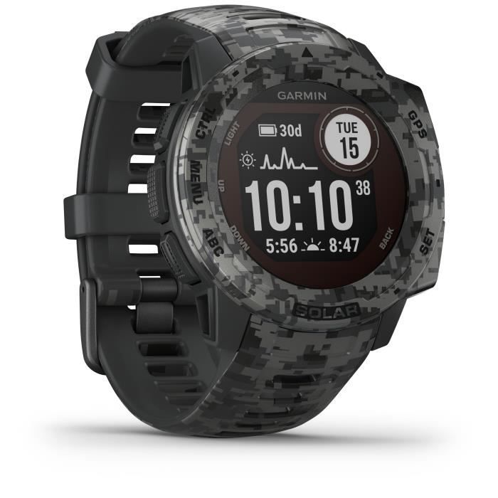 Montre GPS solaire robuste - GARMIN - Instinct Solar - Camo Edition - Graphite Camo - Ecran à deux fenêtres 0,9 "x 0,9" (23 x 23