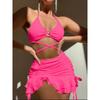 Sexy Gelber Bikini Damen Einfarbig Neckholder Ringverbunden Überkreuzt Cover-Up 3-teiliger Badeanzug 2025 Badeanzug Rüschen Rock Bademode