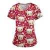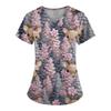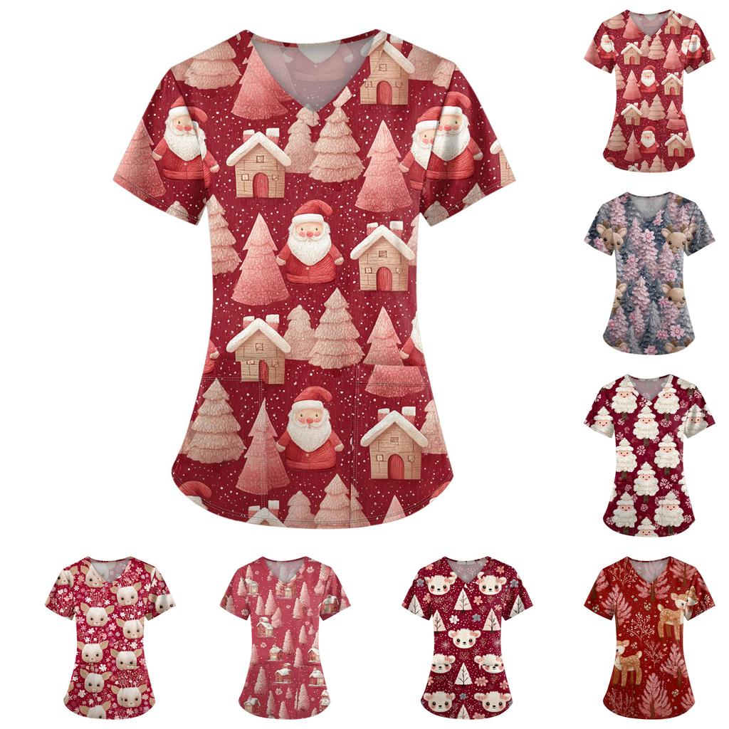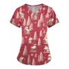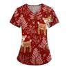 Damen-Bluse mit Weihnachtsdruck, kurzärmelig, V-Ausschnitt, Arbeitstasche