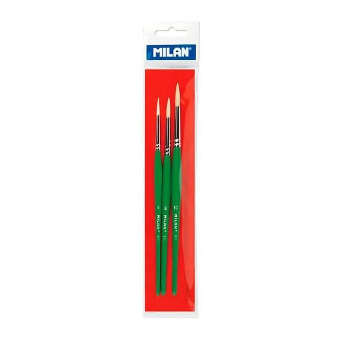 Pinceaux scolaires - MILAN - Série 511 - 3 pièces - Poils en soie de porc - Manche court en bois