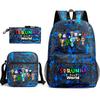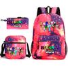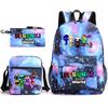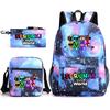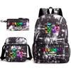 Merchandise-Artikel für Rhythmusbox-Spiele, Grundschultasche, Sprunki-Cartoon-Sternenhimmel-Rucksack, 3-teiliges Set D