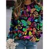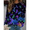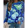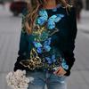 Modisches Retro 3D Schmetterlingsdruck Damen Casual Rundhals Langarm T-Shirt