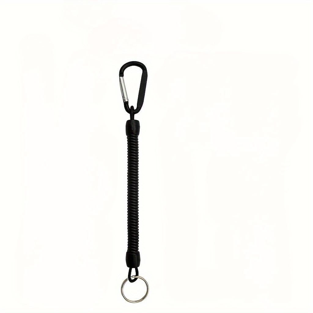 Schwarzer Spiralfeder-Schlüsselanhänger mit einziehbarer Handschlaufe, ausziehbar von 21,49 cm auf 119,38 cm, mit eingebautem Stahldraht, trägt bis zu 6,8 kg.