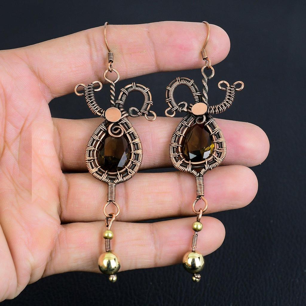 Rauchquarz Ohrringe Edelstein Schmuck, 999 Kupferdraht Gewickelte Handgemachte Ohrringe, Neuestes Design Schmuck