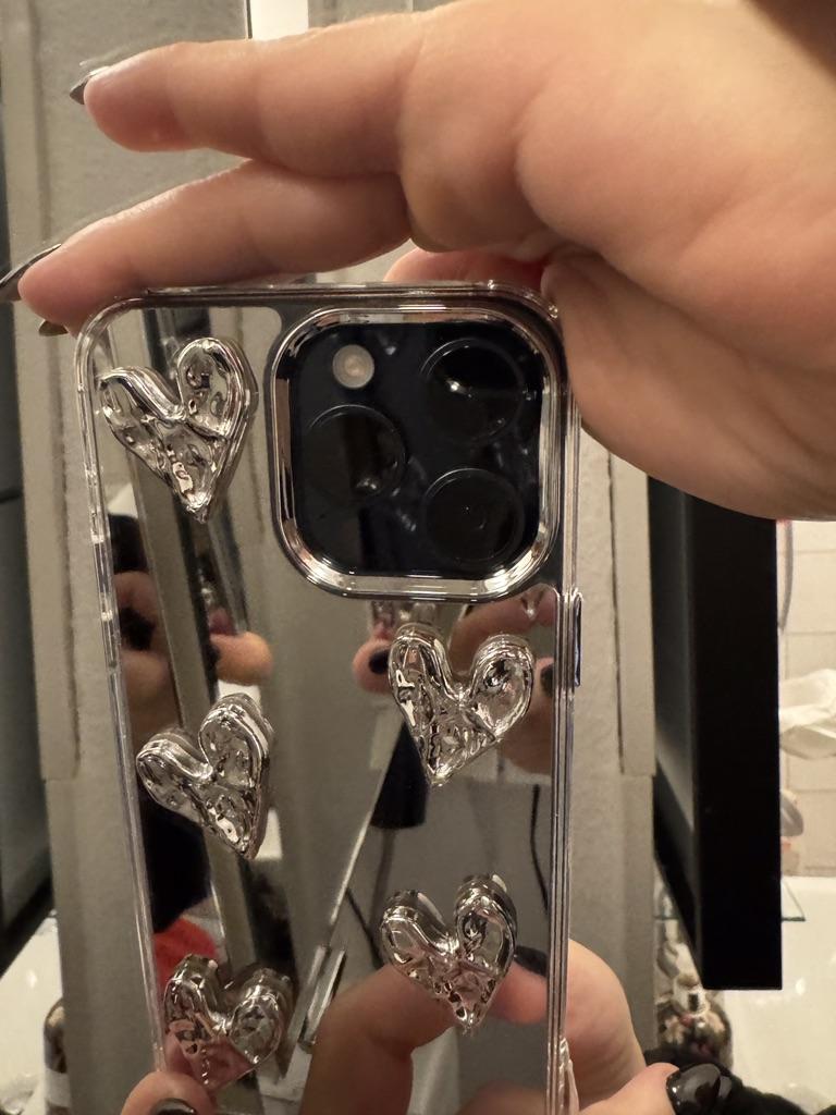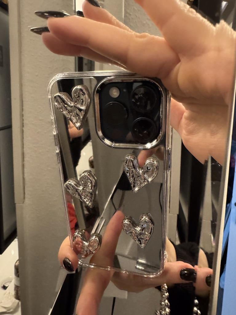 Luxuriöse 3D Liebesherz Silber Spiegel Armband Hülle für iPhone 16 15 13 14 12 11 Pro Max 7 8 16 Plus X XS XR XS Max INS Rückseite