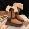 Pelz Damen Hohe Stiefel Wildleder Plateau Kurzer Plüsch Baumwolle Ballerinas Schuhe 2025 Trend Winter Designer Warm Mittelhoch Schneestiefel Für Frauen