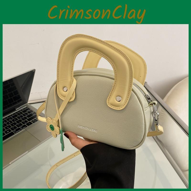 Blocked Color Simple Shoulder Bag With Flower Decoration Women Daily Gift Use
