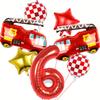 7pcs Fire Truck Red and Gold Five-Pointed Star Balloon Set 32inch Red Numbers 1~9 for Birthday Washing Fire Theme Decoration Toy