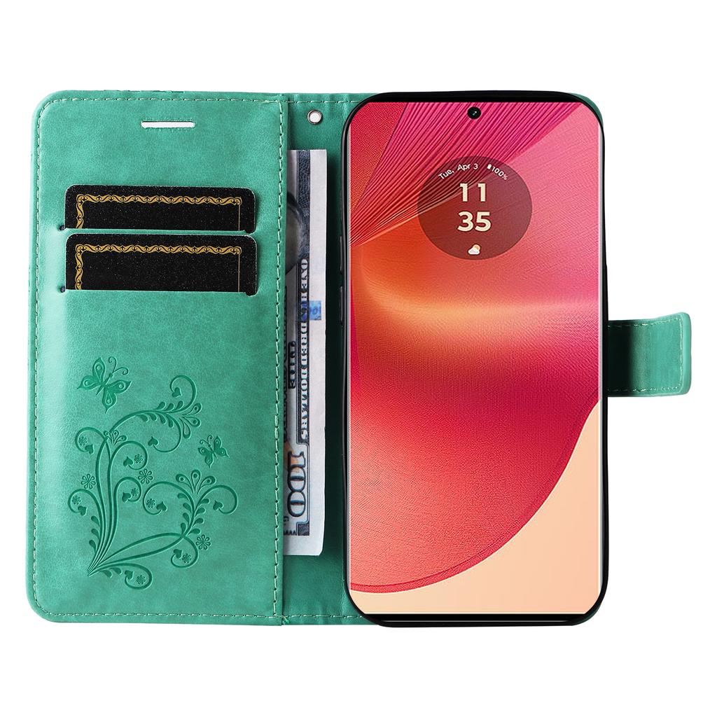 Für Motorola Edge 50 Fusion 5G Brieftasche Hülle Floral Schmetterling Geprägtes Leder Handyhülle Ständer