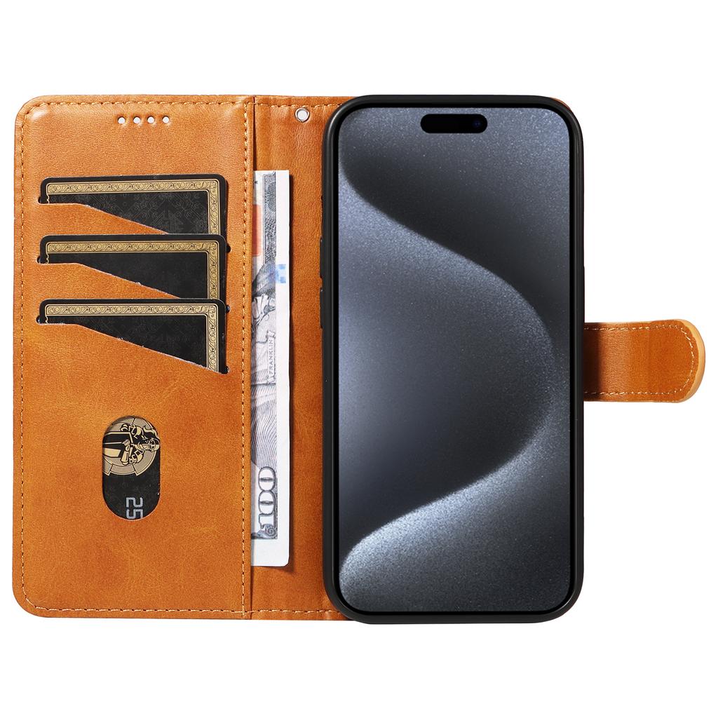 Für iPhone 15 Pro Brieftasche Hülle T-Form Linien Leder Handyhülle Ständer