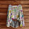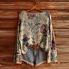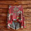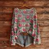 Damen T-Shirt Vintage Blumendruck Rundhalsausschnitt Locker Langarm Mittellang Daumenloch-Top