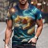 Sternenhimmel Katze Universum Muster Herren T-Shirts Lustiges Tier 3D Druck T-Shirts Sommer Harajuku Kurzarm O-Ausschnitt Oberteile