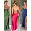 Women's Fashion Sexy Satin Dress Open Back Sling