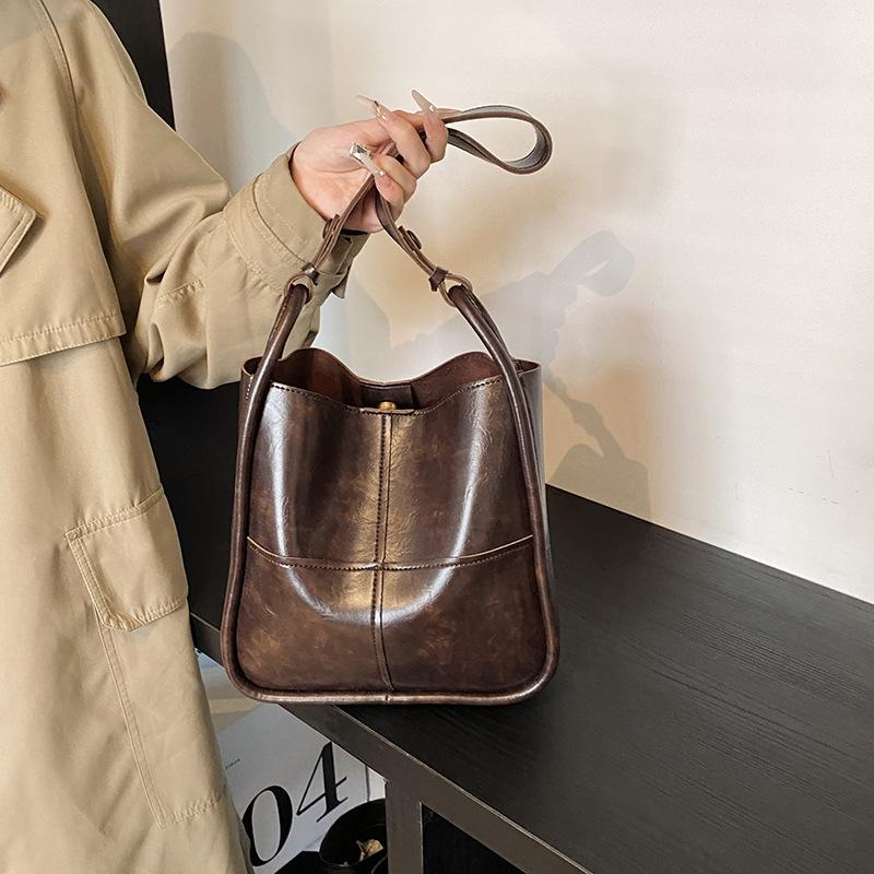 Tasche mit großem Fassungsvermögen, neue trendige Damentasche, Messenger-Bag mit Retro-Textur, modische und lässige einzelne Schulter-Achsel-Eimertasche.