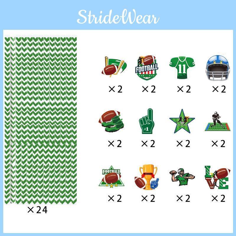This set of disposable paper straws features a festive Super Bowl design, ideal for enhancing party decor. Constructed from durable paper, with two unique styles included. Suitable for sports-themed celebrations and large gatherings, they support quick cleanup. Wipe clean with a damp cloth to maintain their appearance.