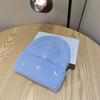 Neuer Perlen-Schleifen-Luxus-Wollhut für Damen mit großem Kopfumfang, der klein wirkt, Kälteschutz, Ohrenschutz, Strickmütze für Damen