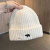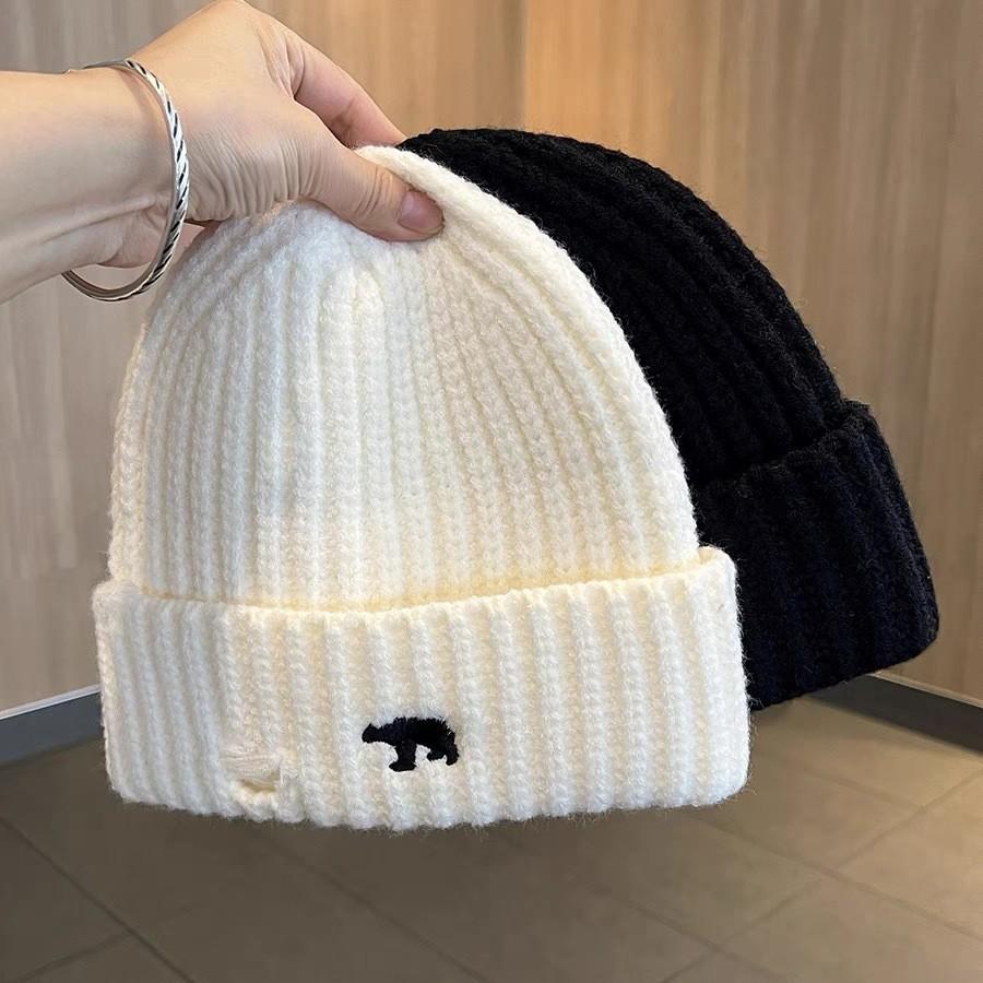 Ripped Wool Hat for Women In Autumn and Winter Versatile Warm Knitted Hat Showing Face Small Embroidery Polar Bear Ear Protection Cold Hat Men