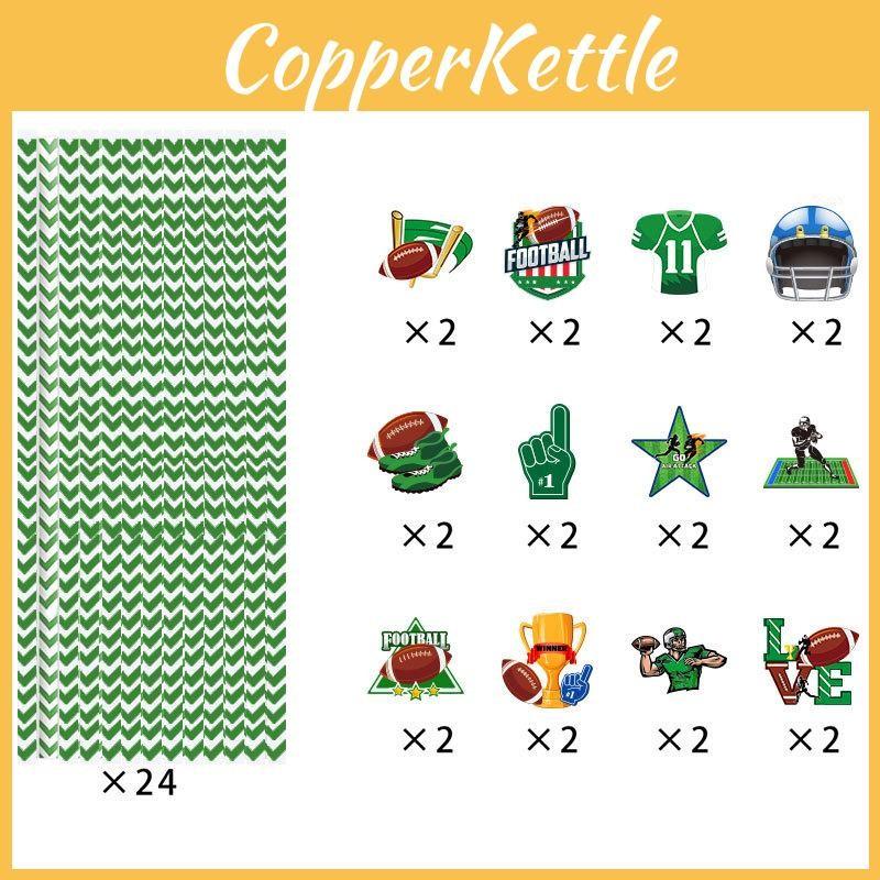 This set of disposable paper straws features a festive Super Bowl design, ideal for enhancing party decor. Constructed from durable paper, with two unique styles included. Suitable for sports-themed celebrations and large gatherings, they support quick cleanup. Wipe clean with a damp cloth to maintain their appearance.