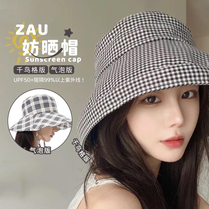 Zhao Ruth plaid bucket hat small fresh lace-up sun hat big brim summer sun protection hat women's sun hat