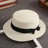 Strohhut Frau Sommer Britisch Retro Flacher Oberteil Kleiner Frischer Zylinder Sonnenschutz Sonnencreme Strandhut Reise Tide Sommer
