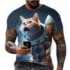 Sommer Rundhals Cooles Astronauten Katze Muster 3D Druck Top Modische Lässige Kurzarm Herren T-Shirts